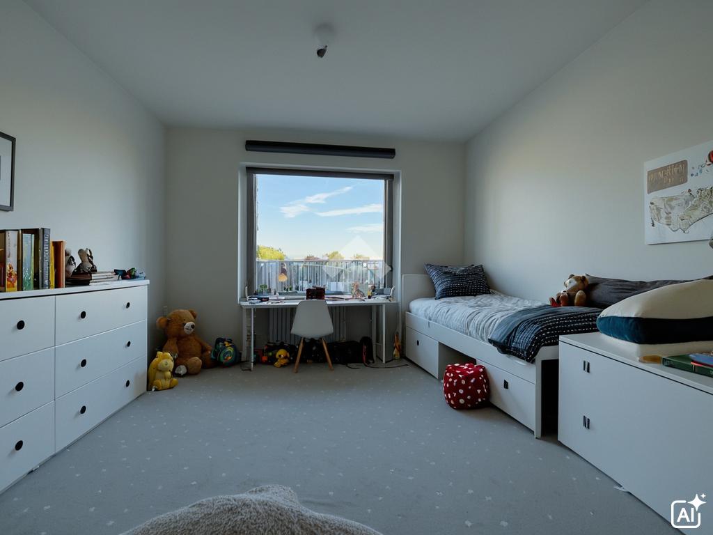 L'appartamento si compone di ampio ingresso, soggiorno con cucina a vista che si affaccia su un portico di 61 mq con annesso giardino di 186 mq, doppi servizi entrambi finestrati, camera da letto con cabina armadio e due camerette.