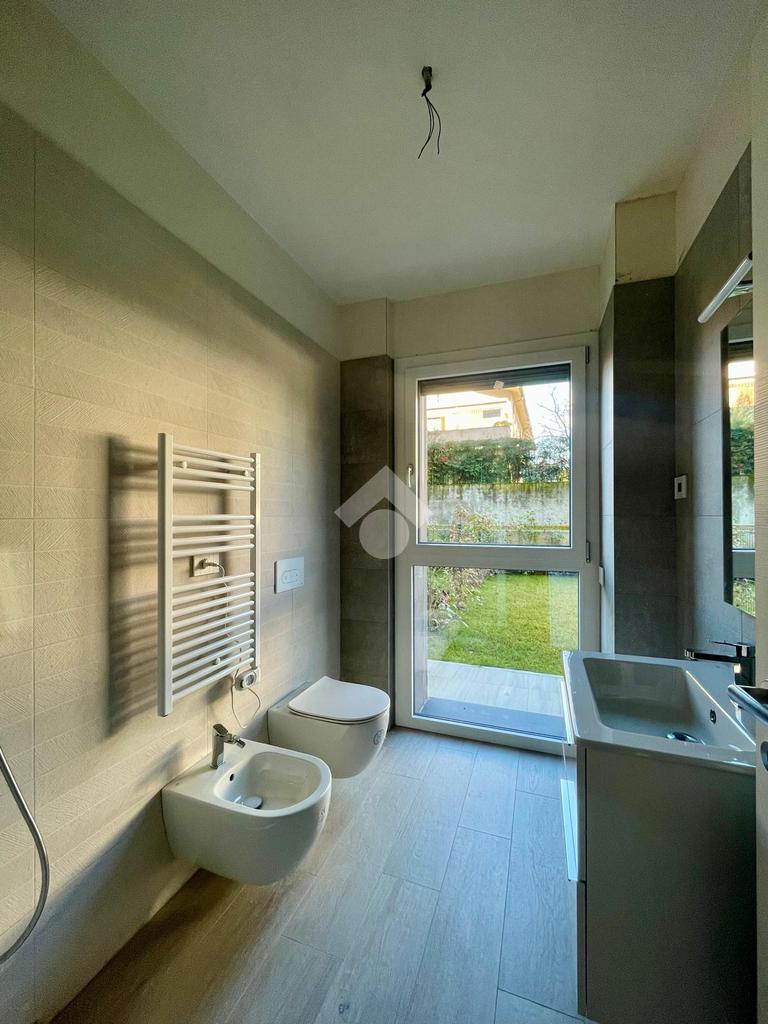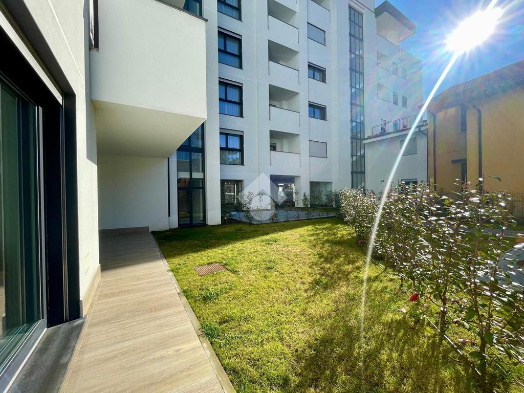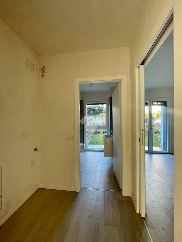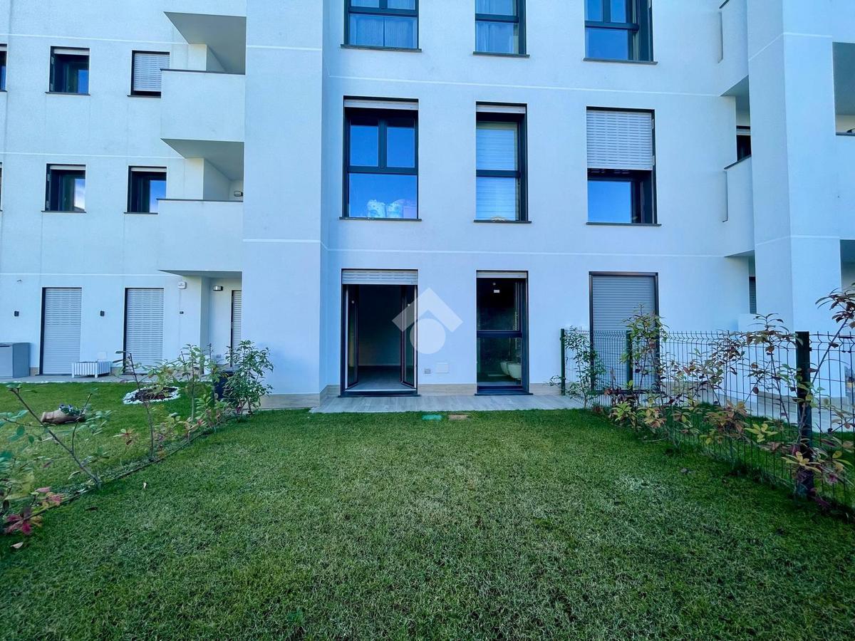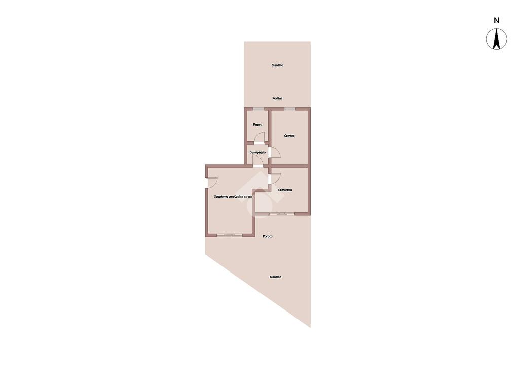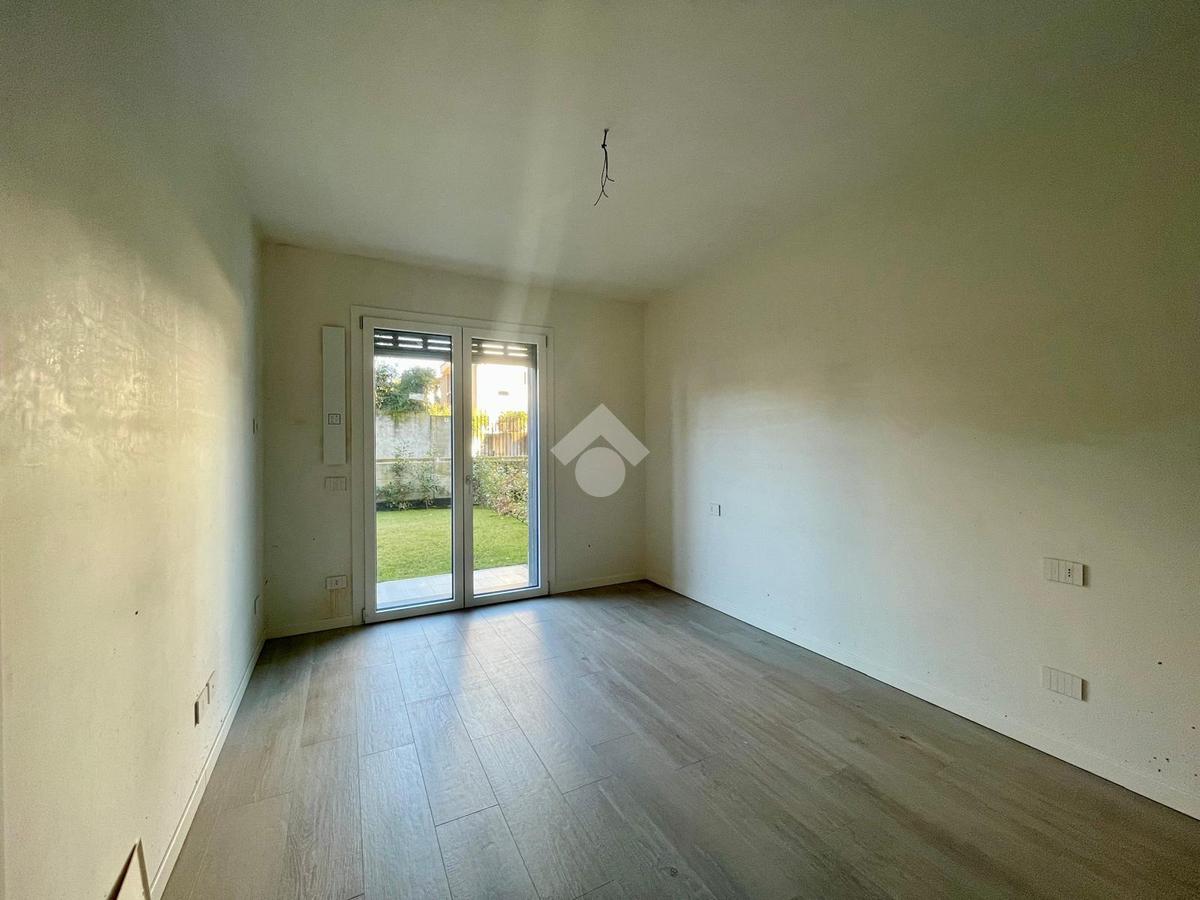 Tre locali con ampio portico e giardino privato di 115 mq su due lati.