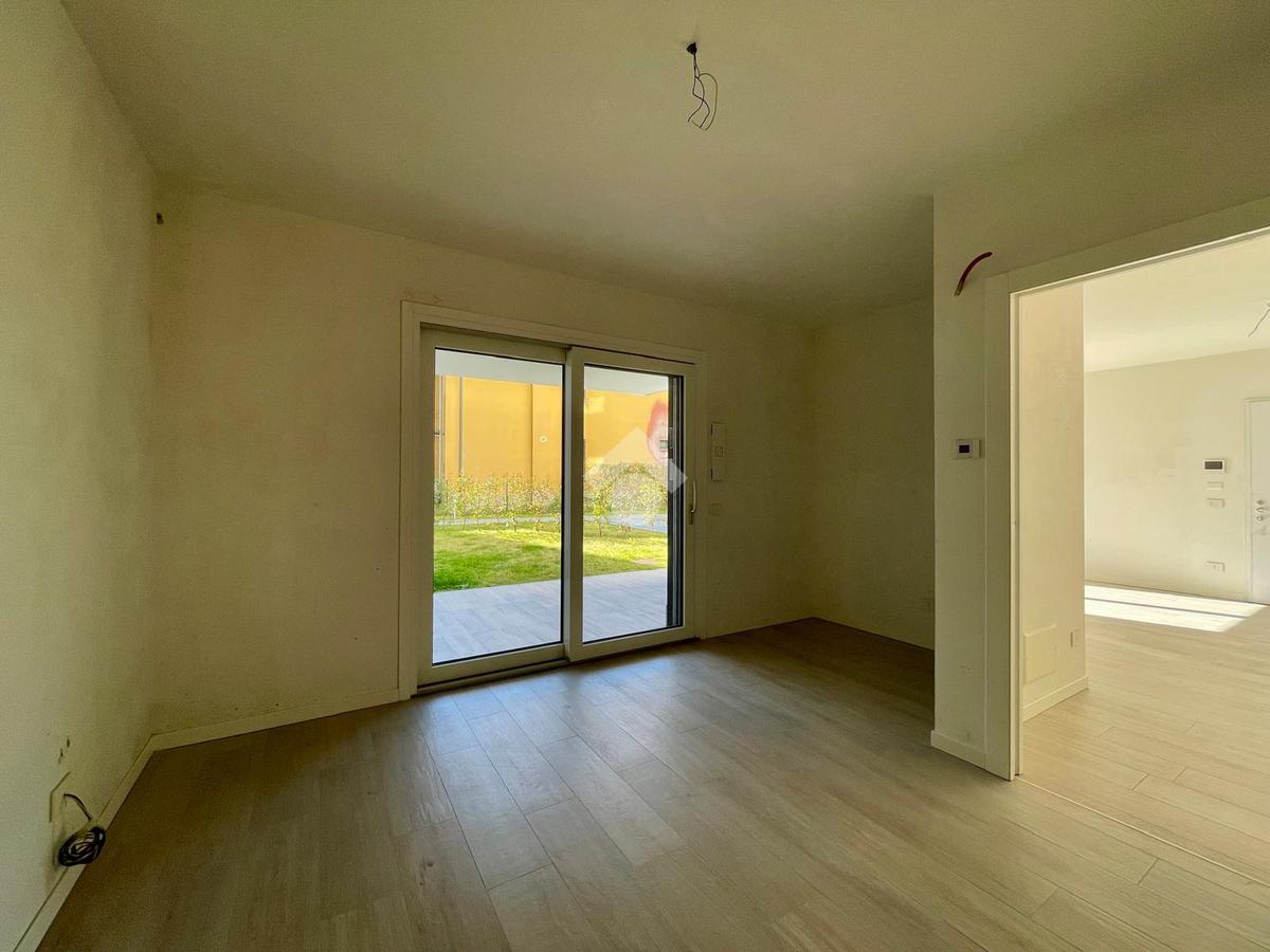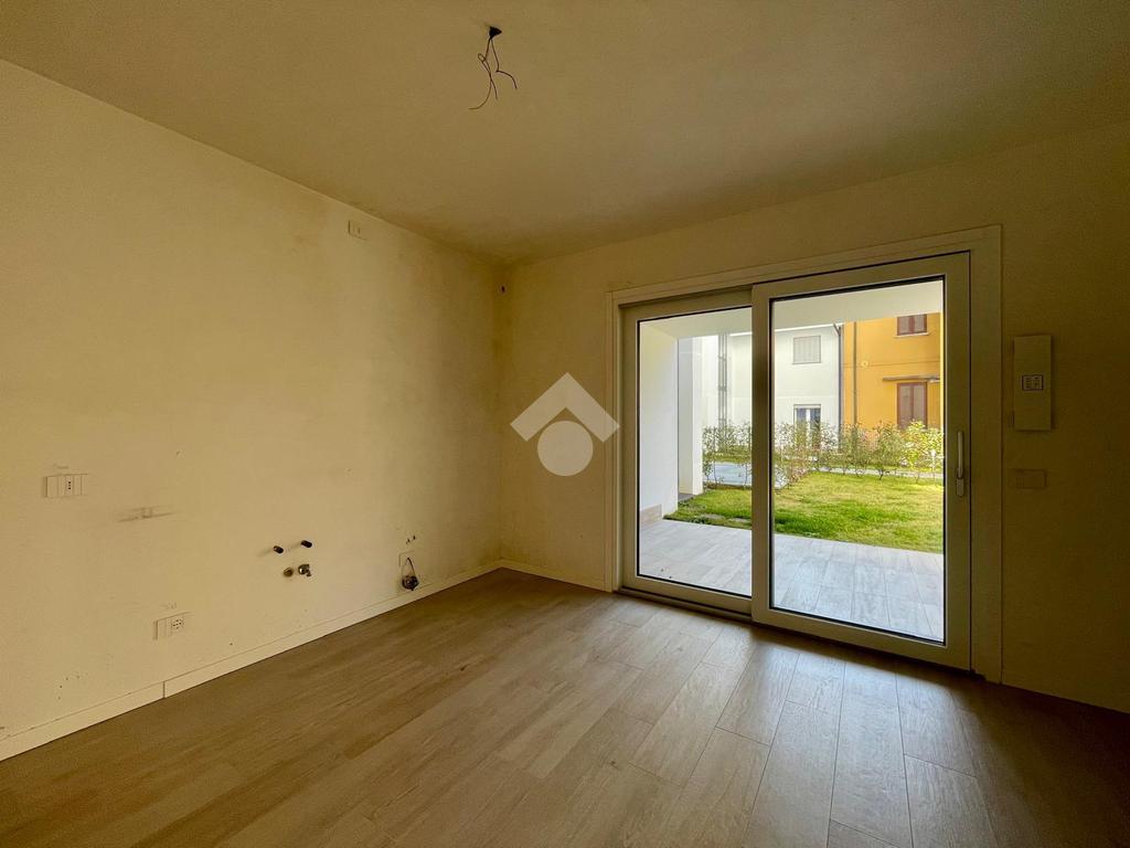 L'appartamento si compone di soggiorno con cucina a vista che si affaccia su un portico di 15mq. e su un giardino di 115mq, bagno finestrato, camera da letto e cameretta. A parte dal prezzo cantine e box singoli e doppi.