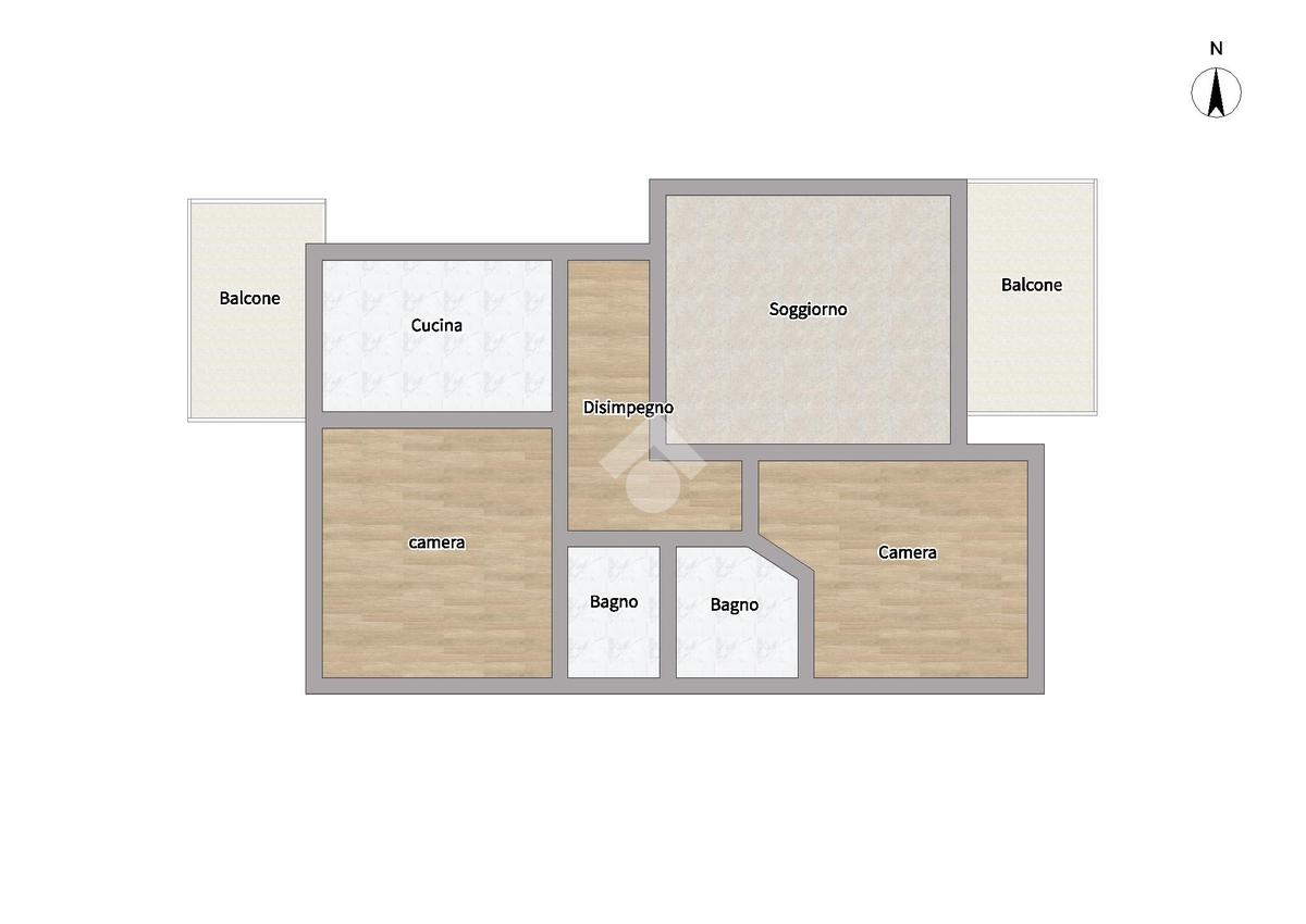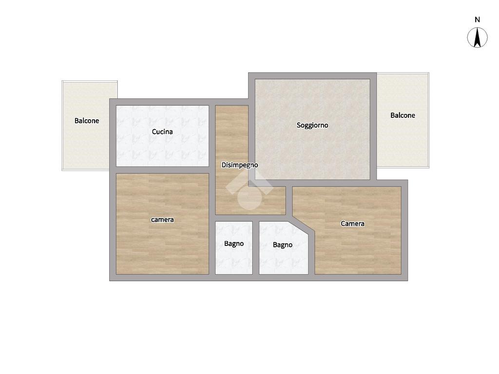L'ingresso conduce a un soggiorno con accesso a un comodo balcone, completo di tende da sole, e a una cucina abitabile servita da un secondo balcone, anch'esso dotato di tende da sole. La zona notte comprende una spaziosa camera matrimoniale, una cameretta di generose dimensioni e due bagni finestrati: uno con doccia e l'altro con vasca. A completare la proprietà una cantina di pertinenza.