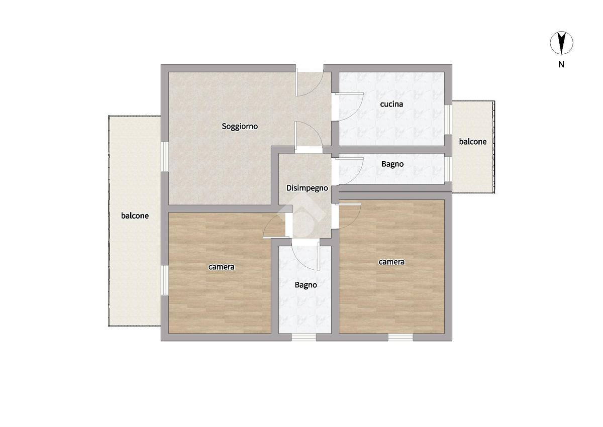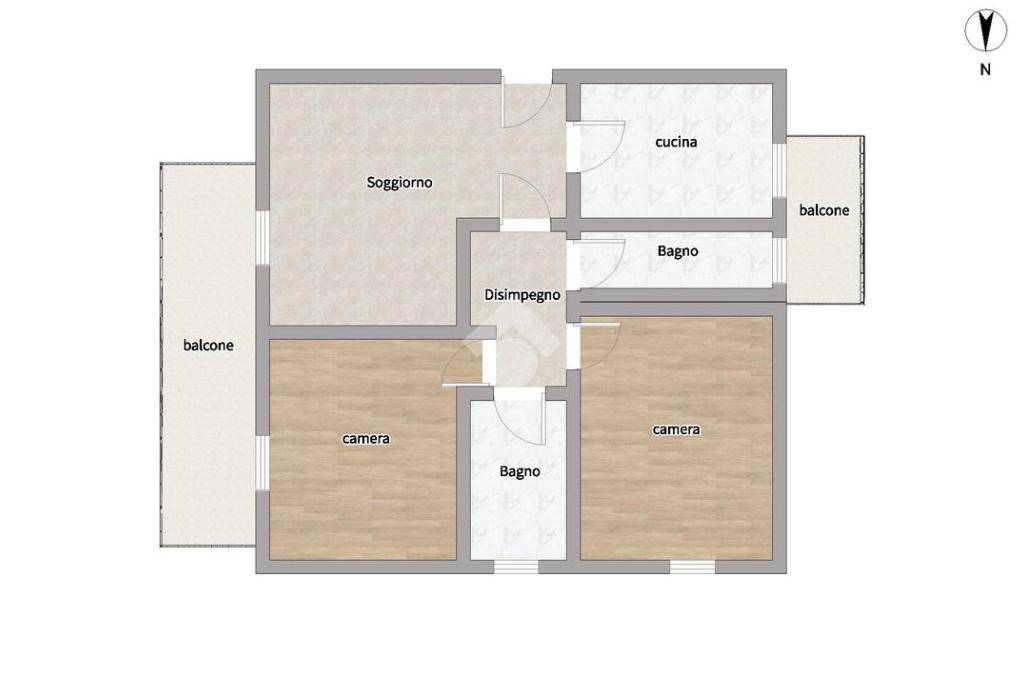 la zona giorno comprende un luminoso soggiorno con accesso a un balcone vivibile, ideale per momenti di relax, e una cucina separata con secondo balcone di servizio.