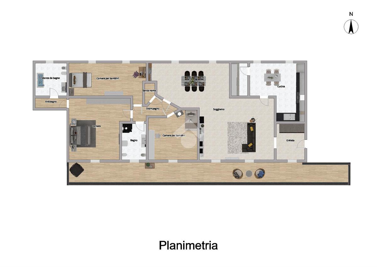 La zona notte comprende una camera matrimoniale con bagno en suite finestrato, che garantisce massima privacy e comfort, oltre a due camerette separate che offrono versatilità per famiglie, ospiti o smart working.