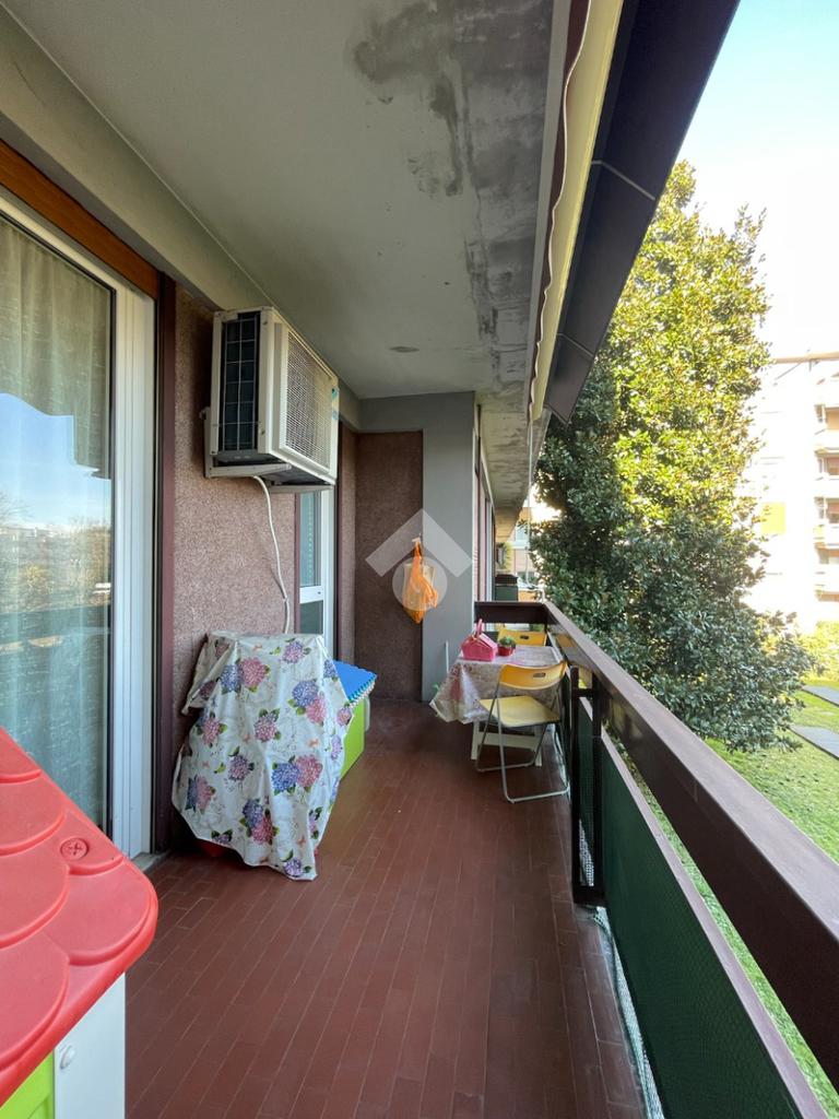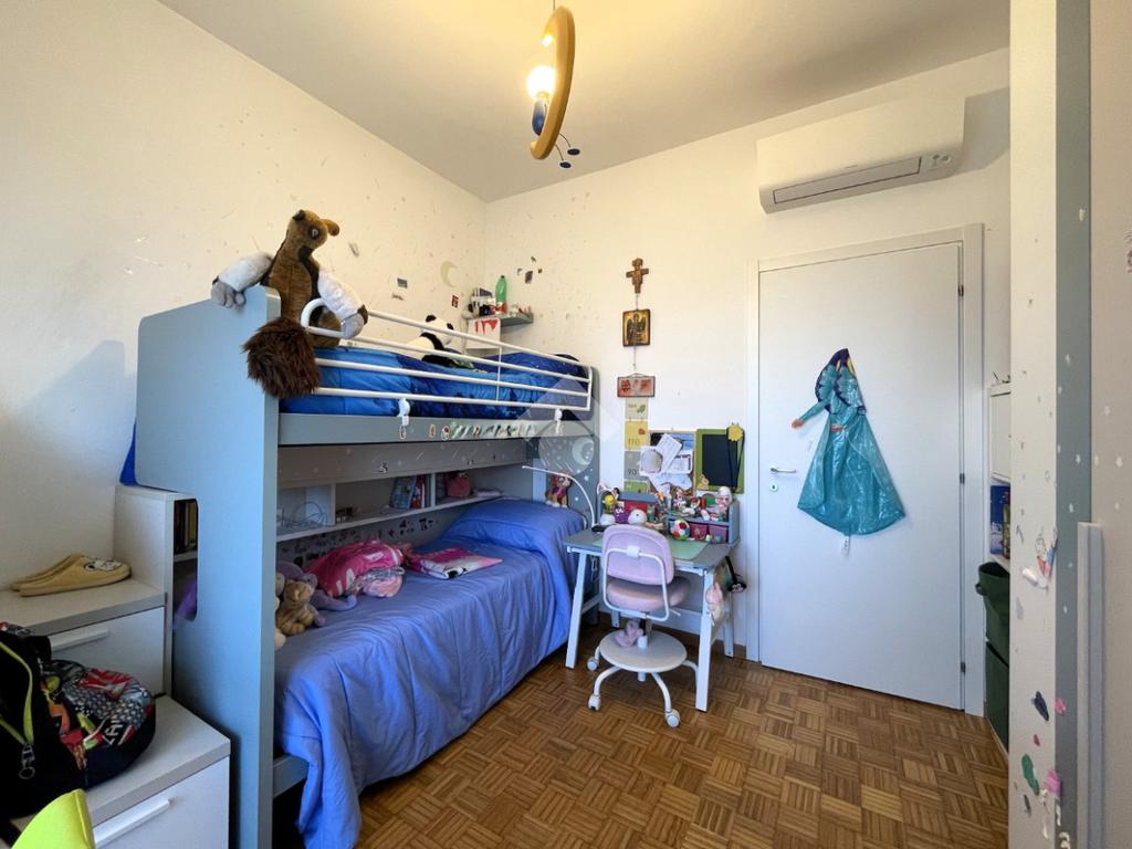 La zona notte comprende una spaziosa camera matrimoniale, una cameretta esposta a Est con secondo terrazzino. A servizio dell'appartamento un bagno finestrato con doccia e un pratico ripostiglio.