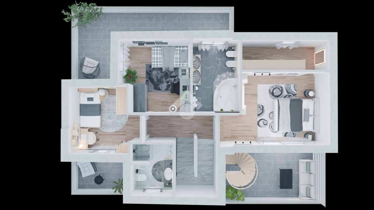 La metratura complessiva, di circa 217 mq commerciali, è progettata per offrire spazi armoniosi e perfettamente distribuiti.